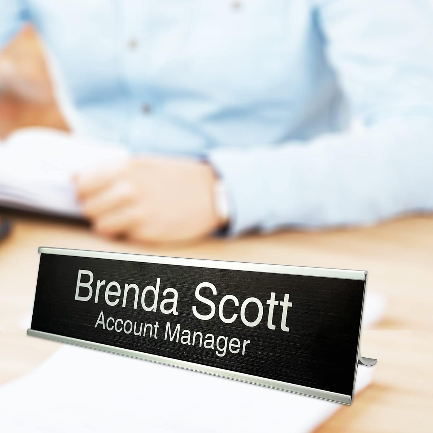 The name plates can insert to holder easily. The holder size is 2″ x 8″.